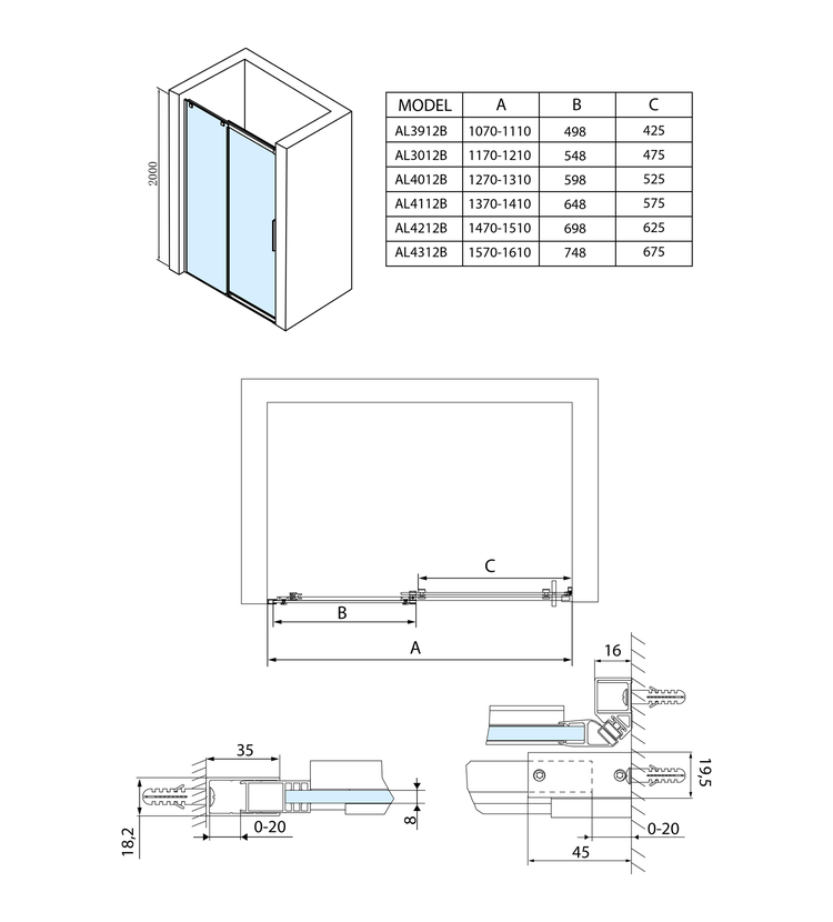 - Dveře jsou děleny na část posuvnou a část pevnou - umožňují variabilní instalaci s levým nebo pravým otevíráním.