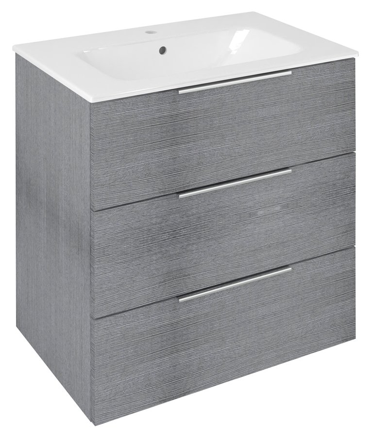CIRASA umyvadlová skříňka 69,8x75x46cm, 3x zásuvka, dub stříbrný