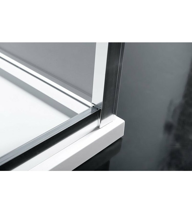| Praktické madlo podtrhuje lehkost designu celé série. | Případné nerovnosti stěny elegantně skryje profil, do kterého se zasouvá sklo dle potřeby až 20 mm. | Bezproblémový chod a snadné čištění zajišťují zdvojené výklopné pojezdy. |
